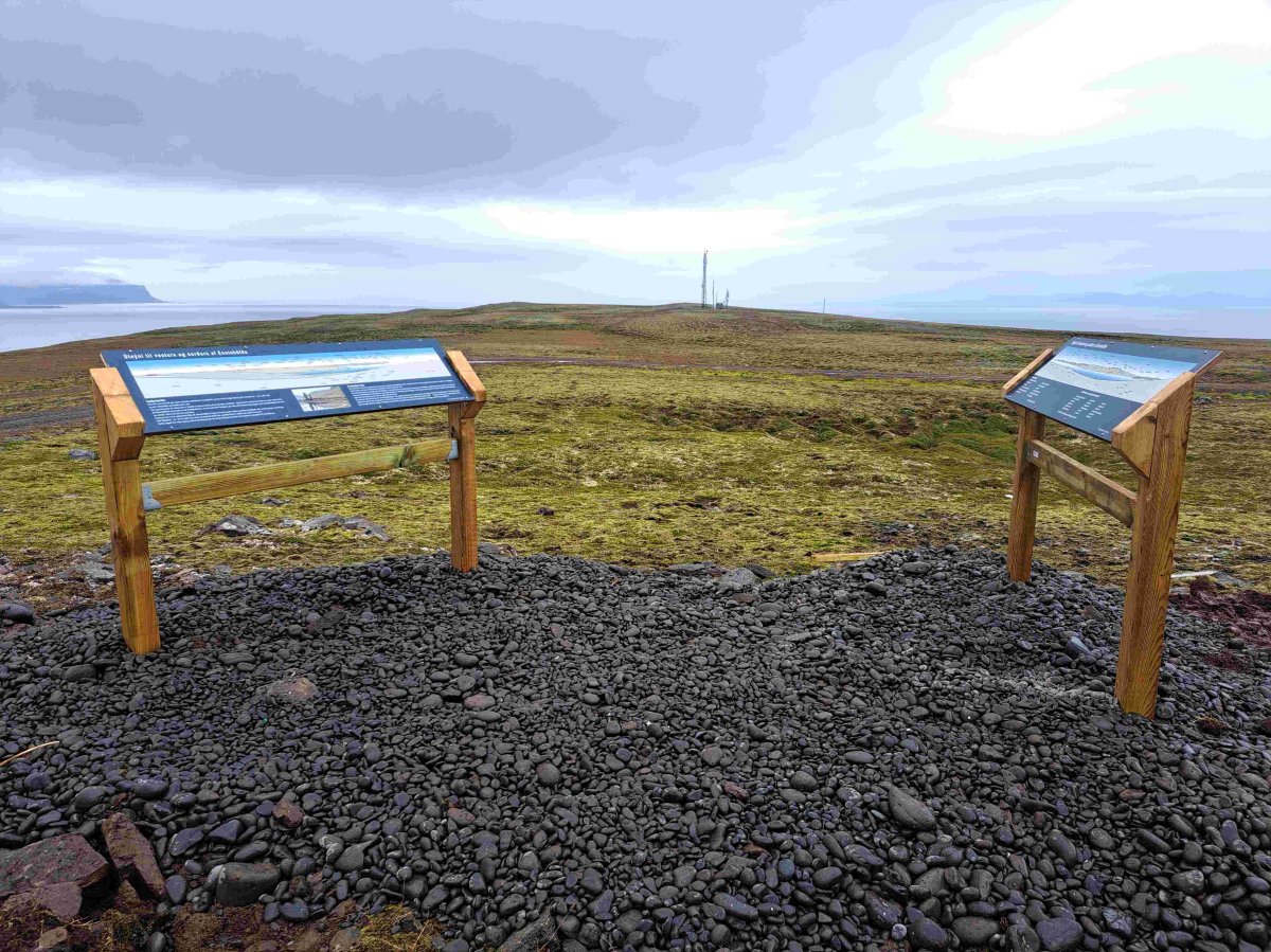 Nú í september voru tvö skilti sett upp þar sem útsýni er best til allra átta norður yfir Strandir, yfir til Skagafjalla og allt suður á Eriríksjökul.